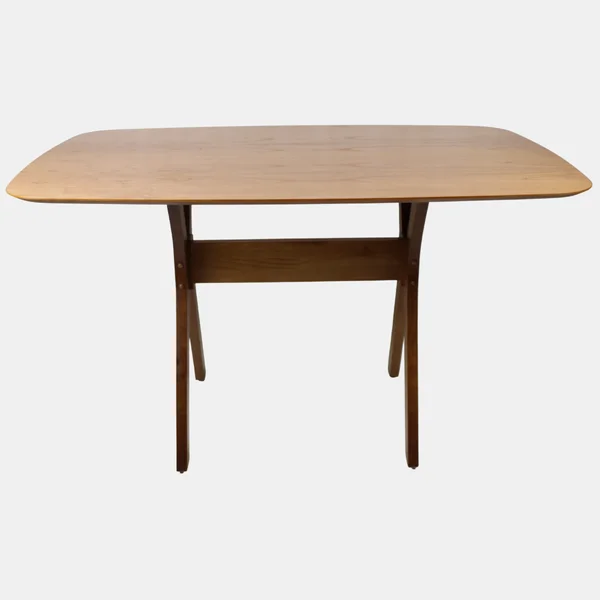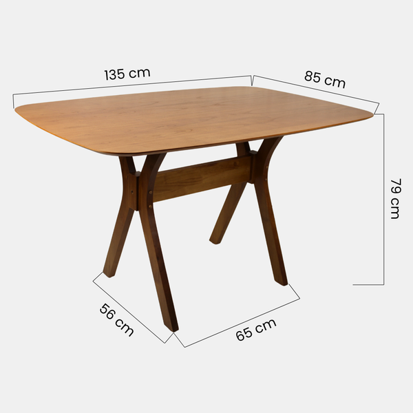 A Mesa Bulgária, produzida em madeira de eucalipto, destaca-se pela sua estrutura robusta e linhas suaves, garantindo resistência e estabilidade sem abrir mão da beleza natural da madeira. Seu acabamento na cor Mel valoriza os veios naturais, trazendo aconchego e requinte ao ambiente.