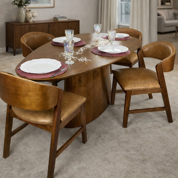 Com combinação harmoniosa entre o castanho da mesa e o castanho das cadeiras, este conjunto traz aconchego e sofisticação para salas de jantar e ambientes integrados.