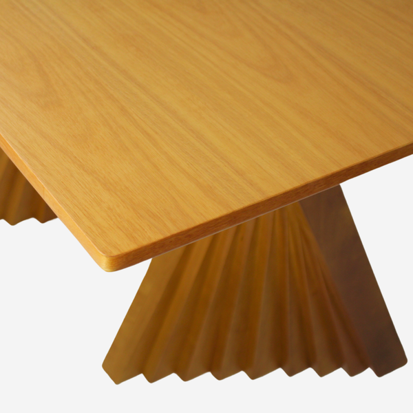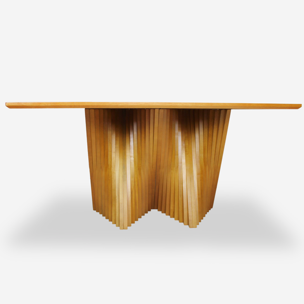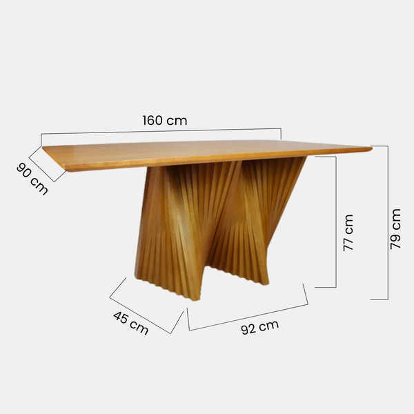 Mesa com base escultural ripada, design exclusivo