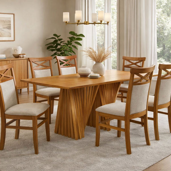 Ideal para salas de jantar modernas, sofisticadas ou de inspiração natural, este conjunto transforma o espaço em um ambiente convidativo para receber família e amigos.